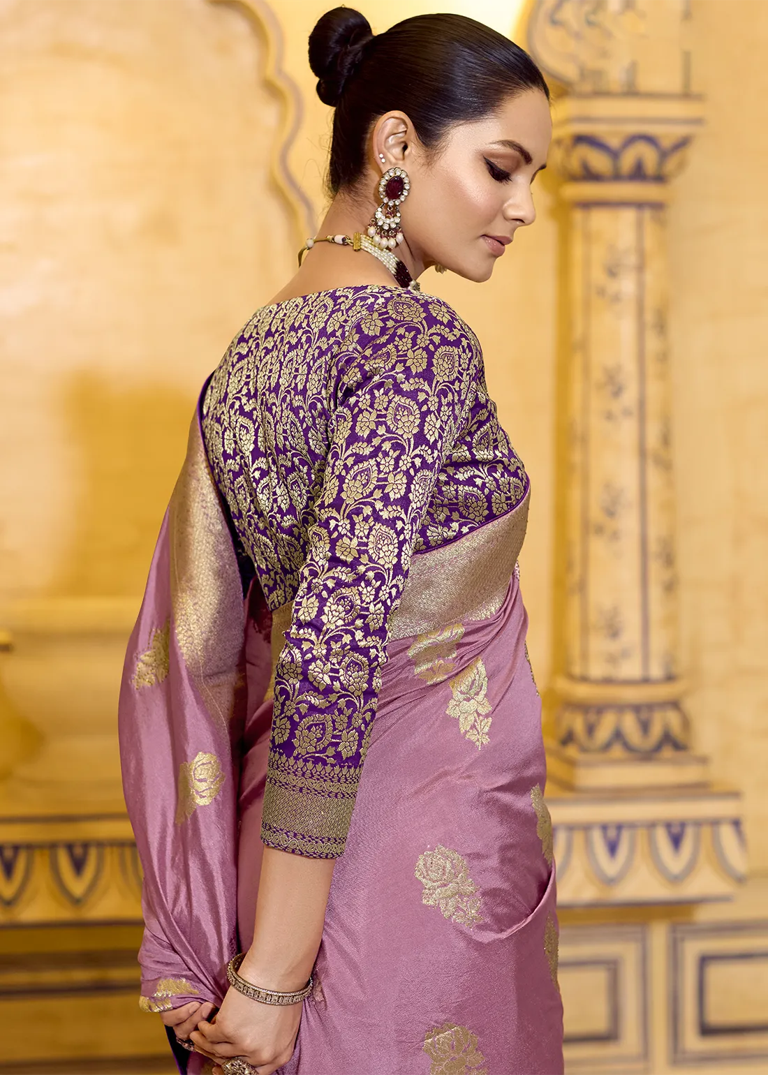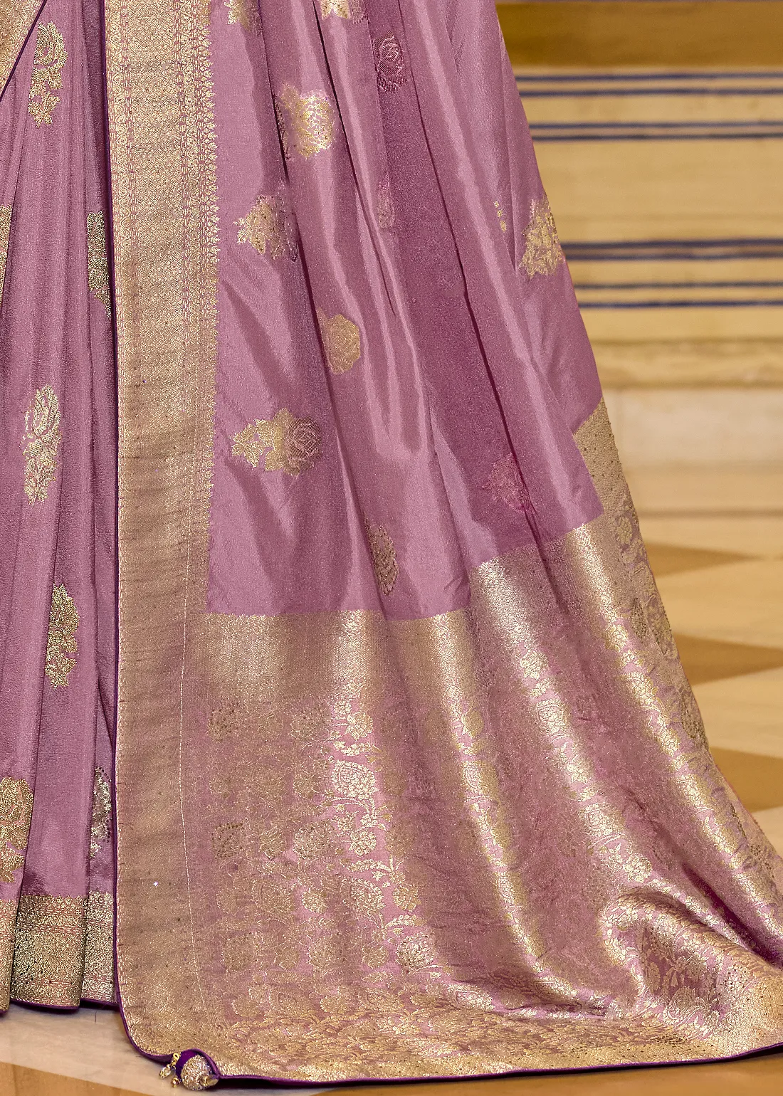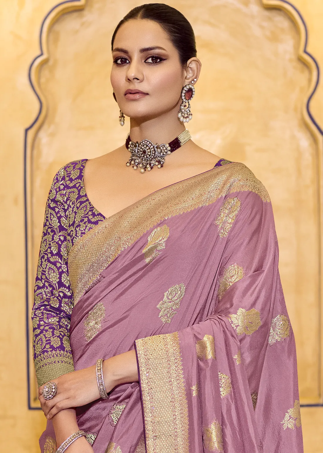 Orchid Purple Banarasi Silk Saree with Stone Work