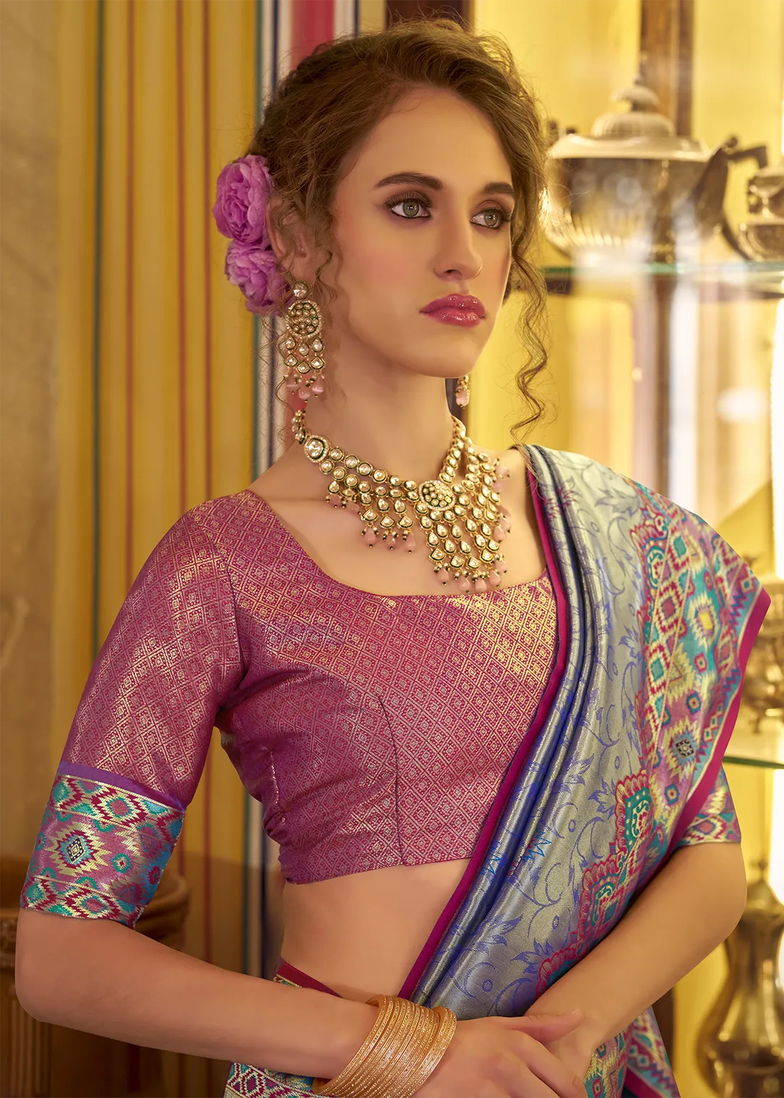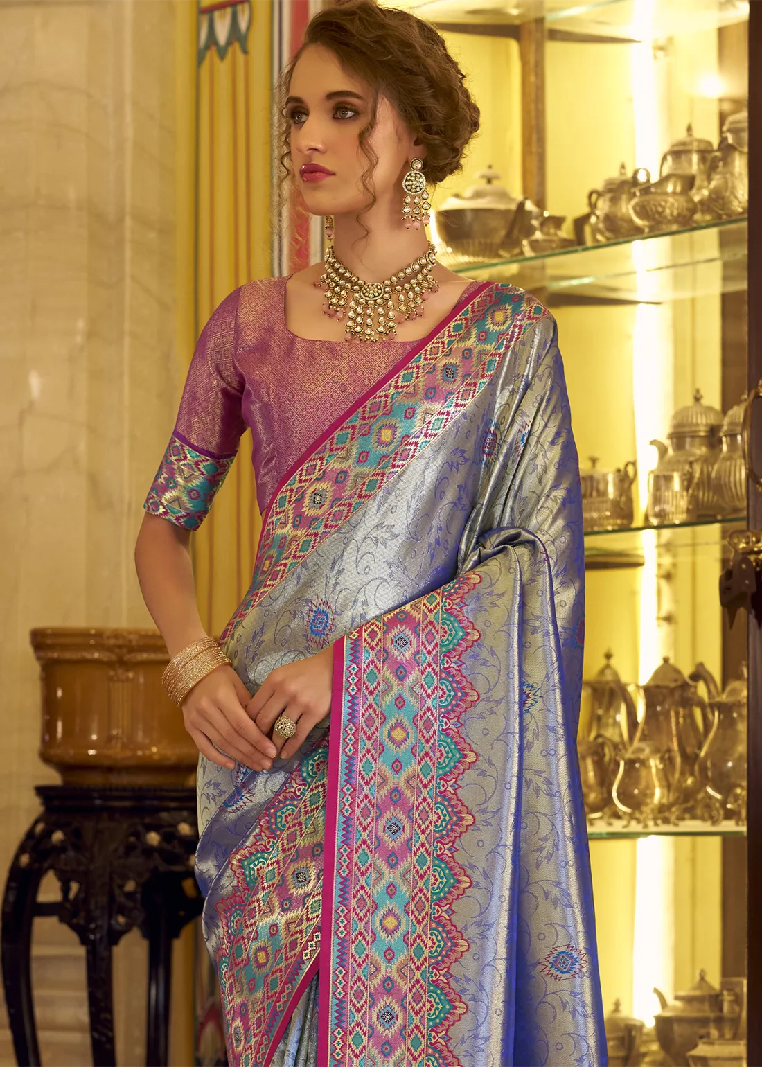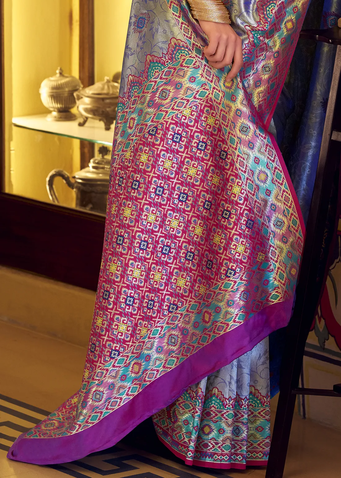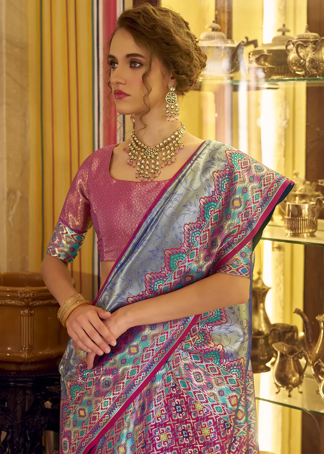 Blue Woven Patola Silk Saree with Navy Blue Blouse