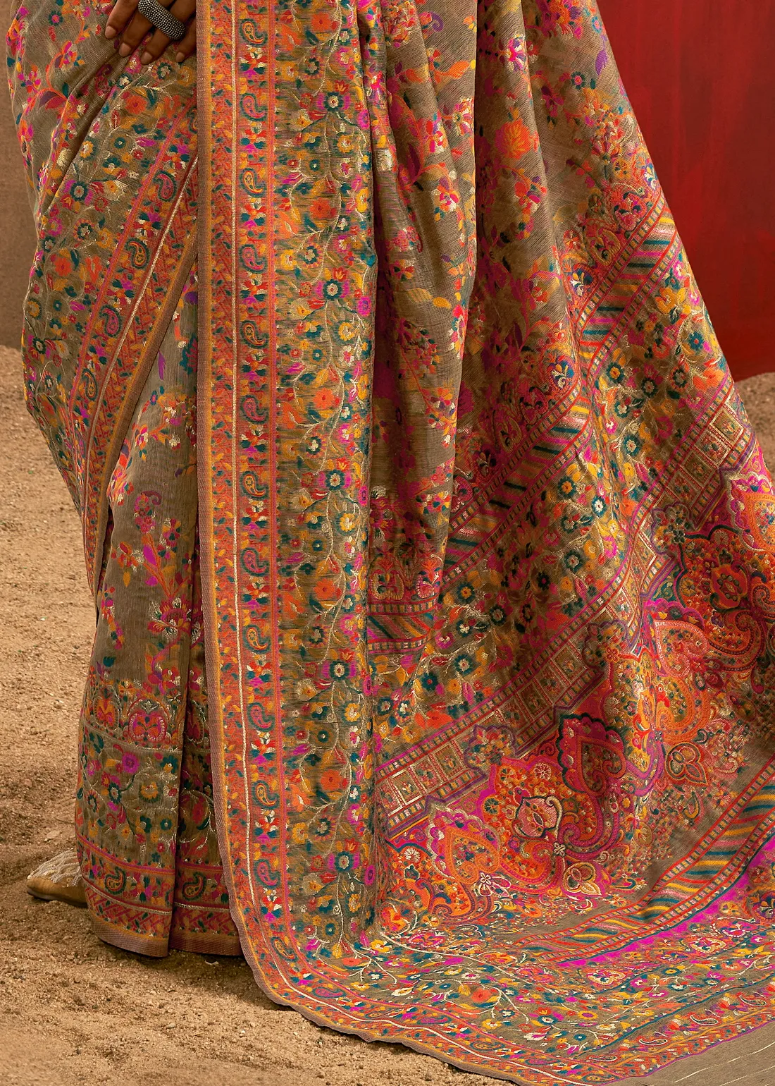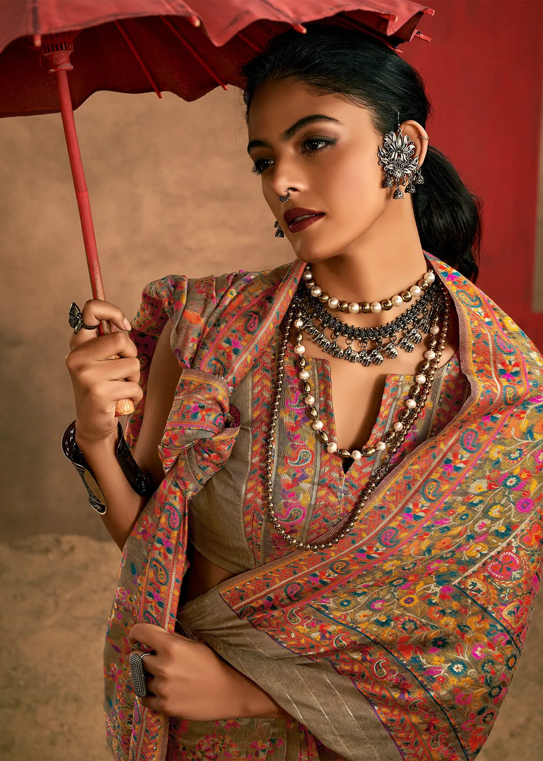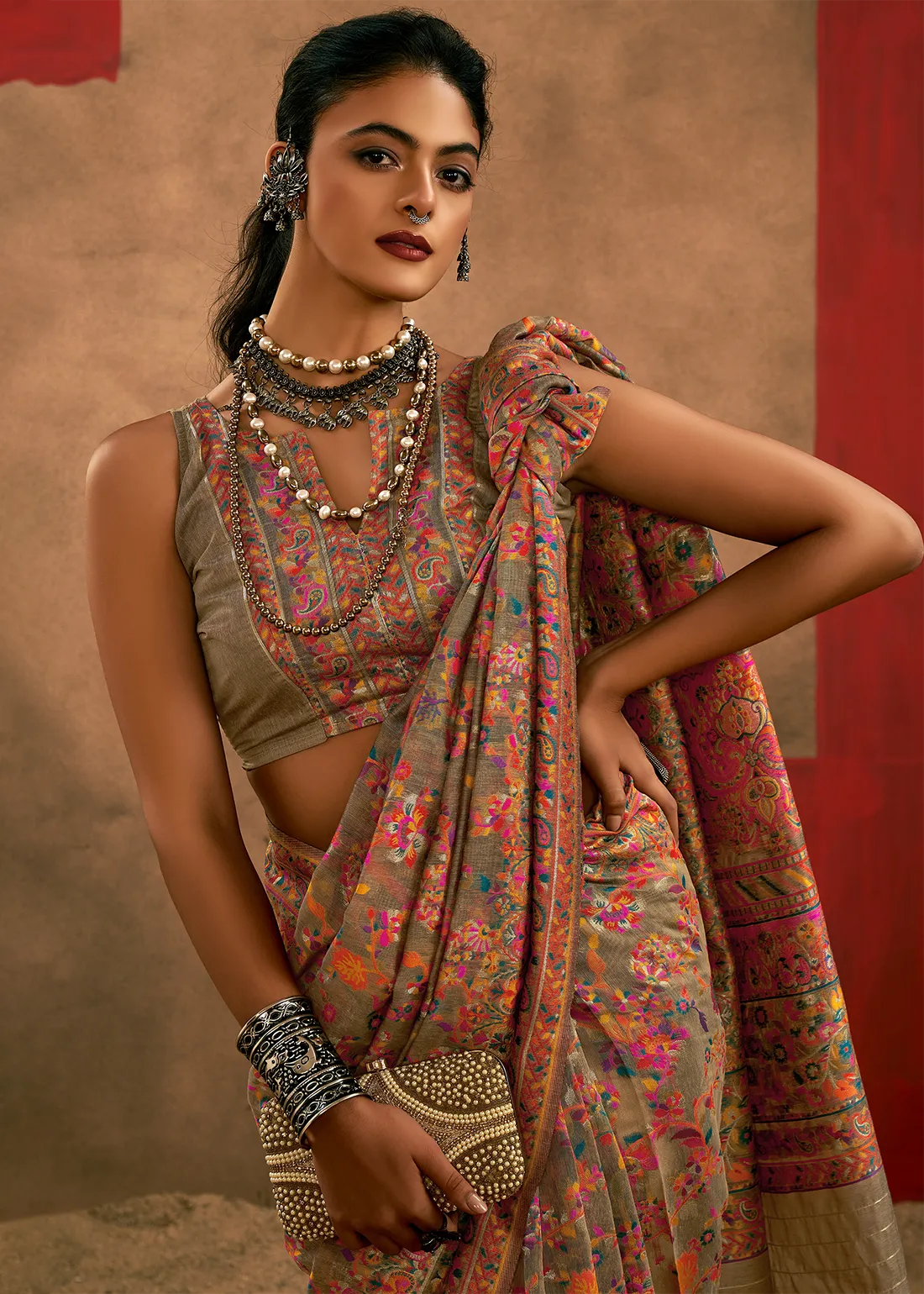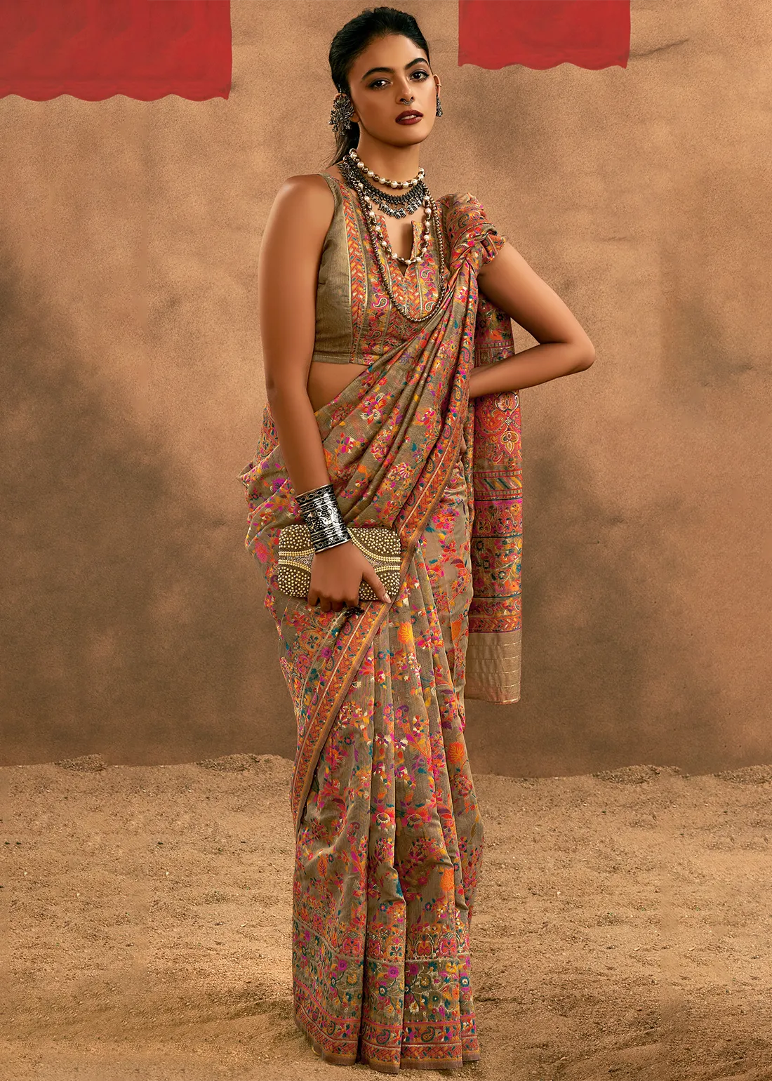 Safari Beige Kashmiri Jamawar Modal Cotton Saree