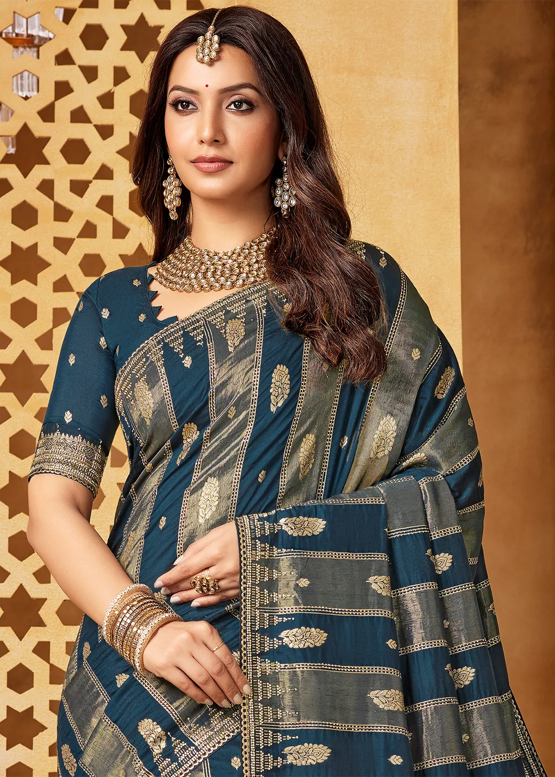 Peacock Blue Banarasi Saree with Multi Tone Weaving