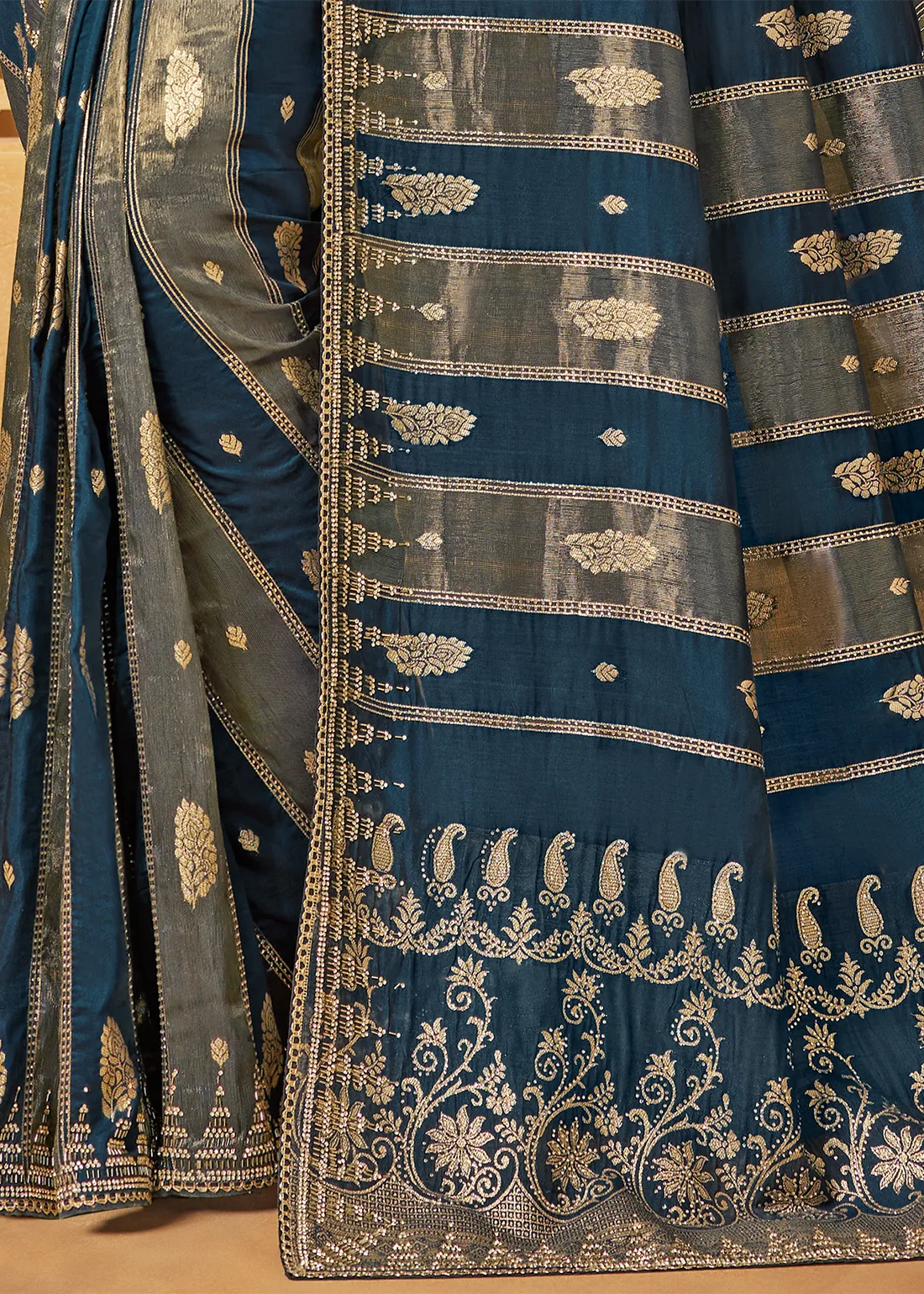 Sapphire Blue Banarasi Silk Saree with Stone Work