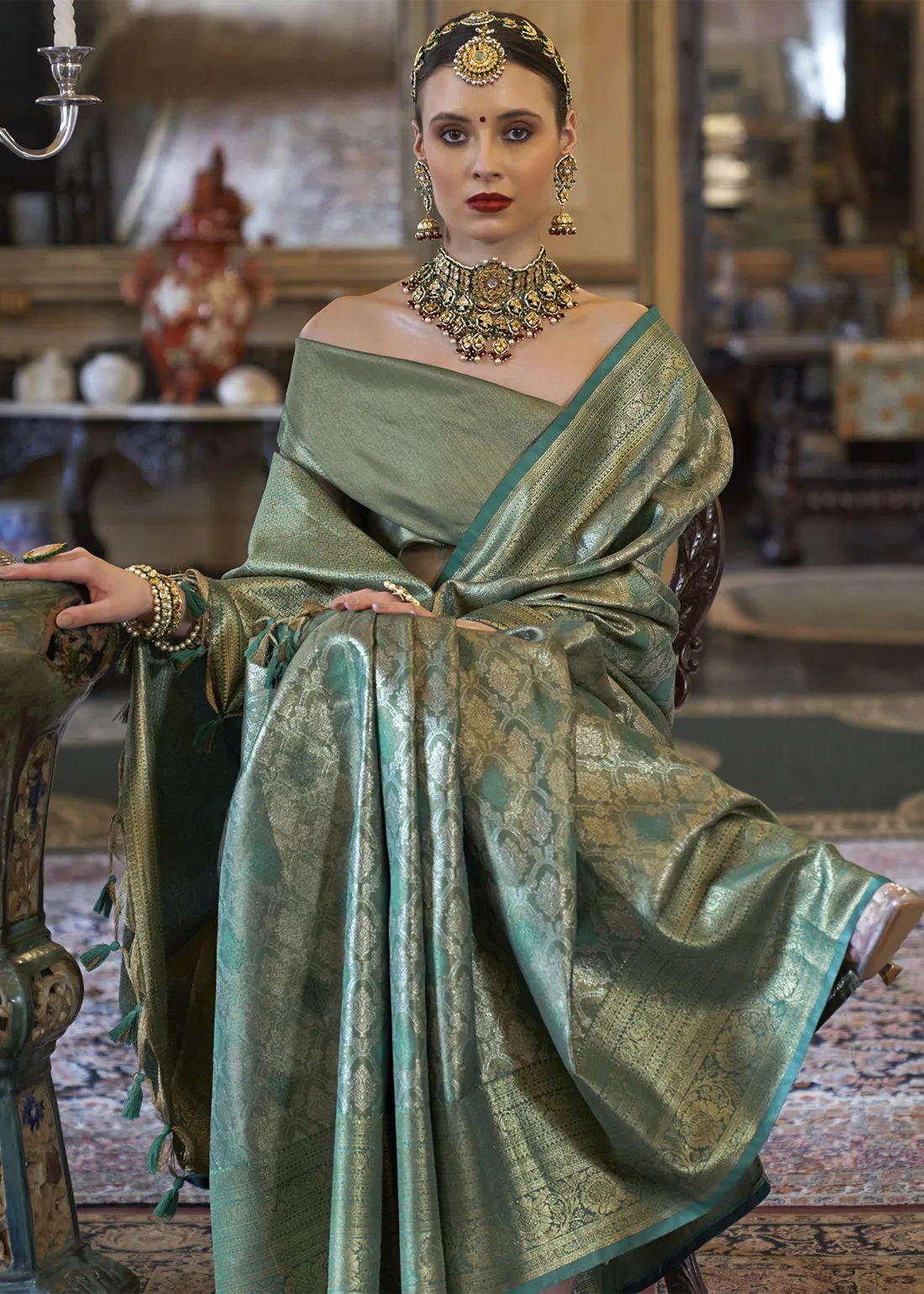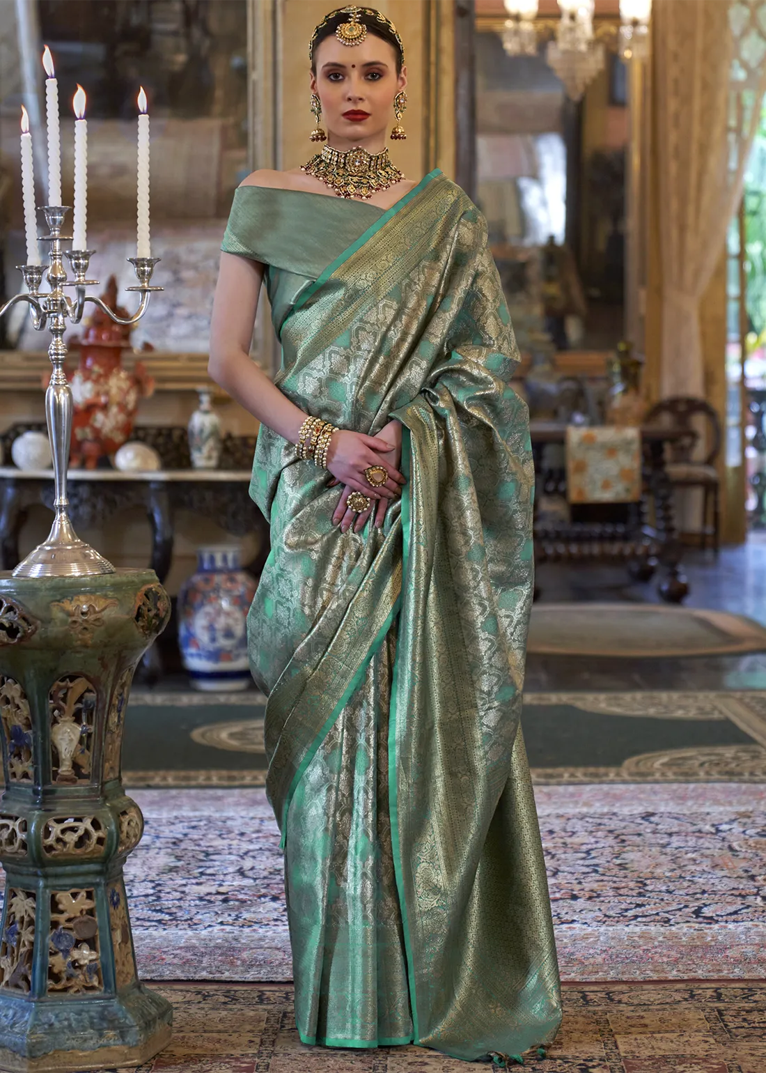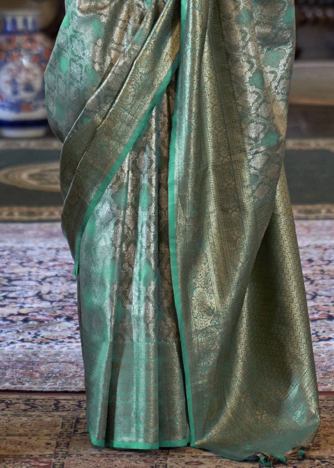 Teal Kanjivaram Silk Saree with Zari Weaving