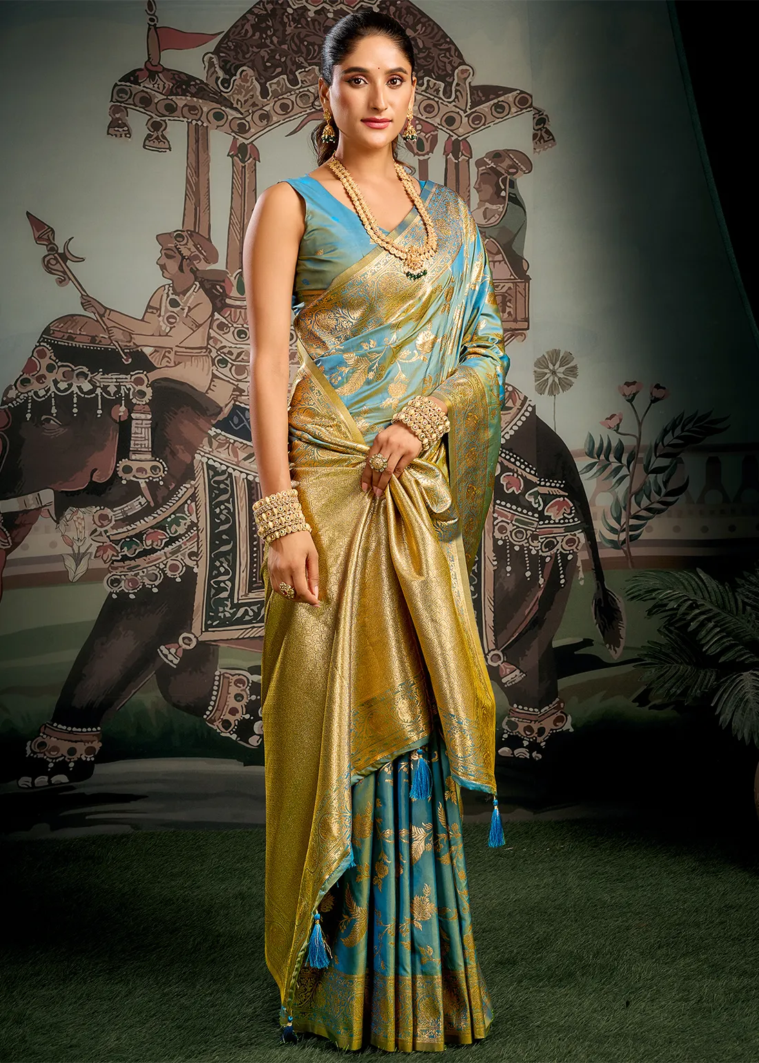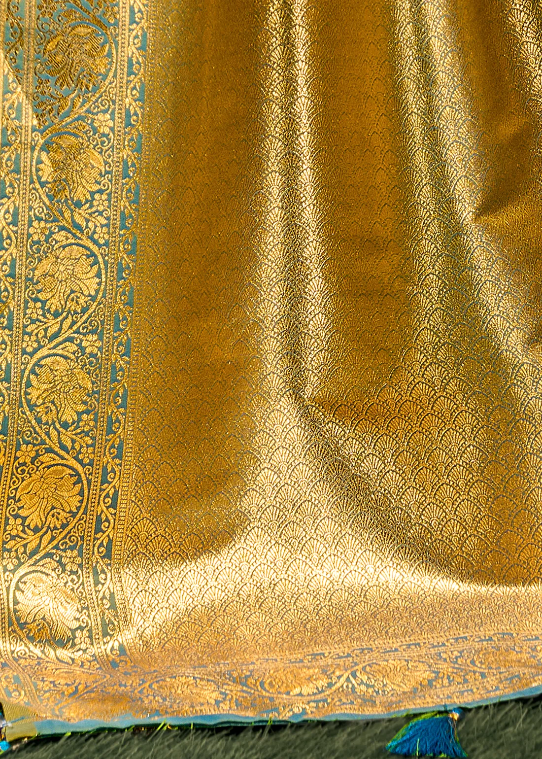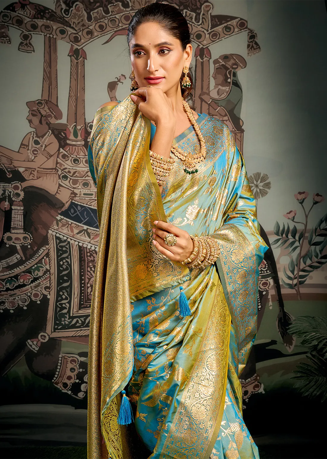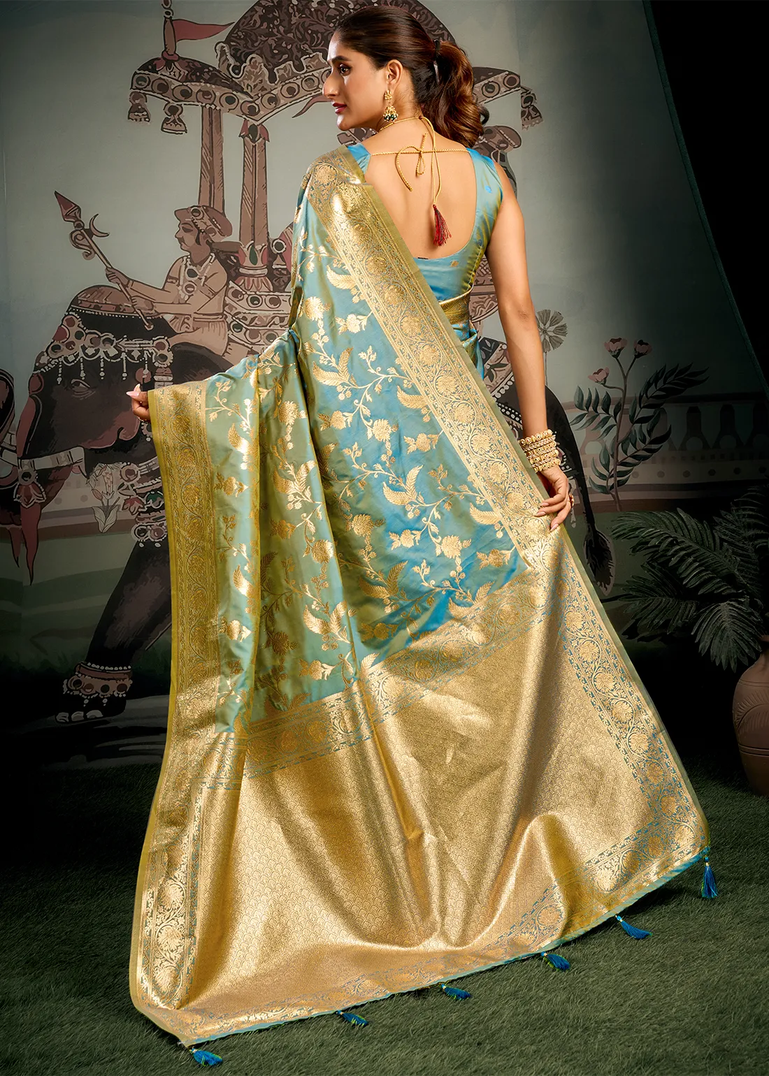 Turquoise Banarasi Silk Saree with Golden Zari Weaving