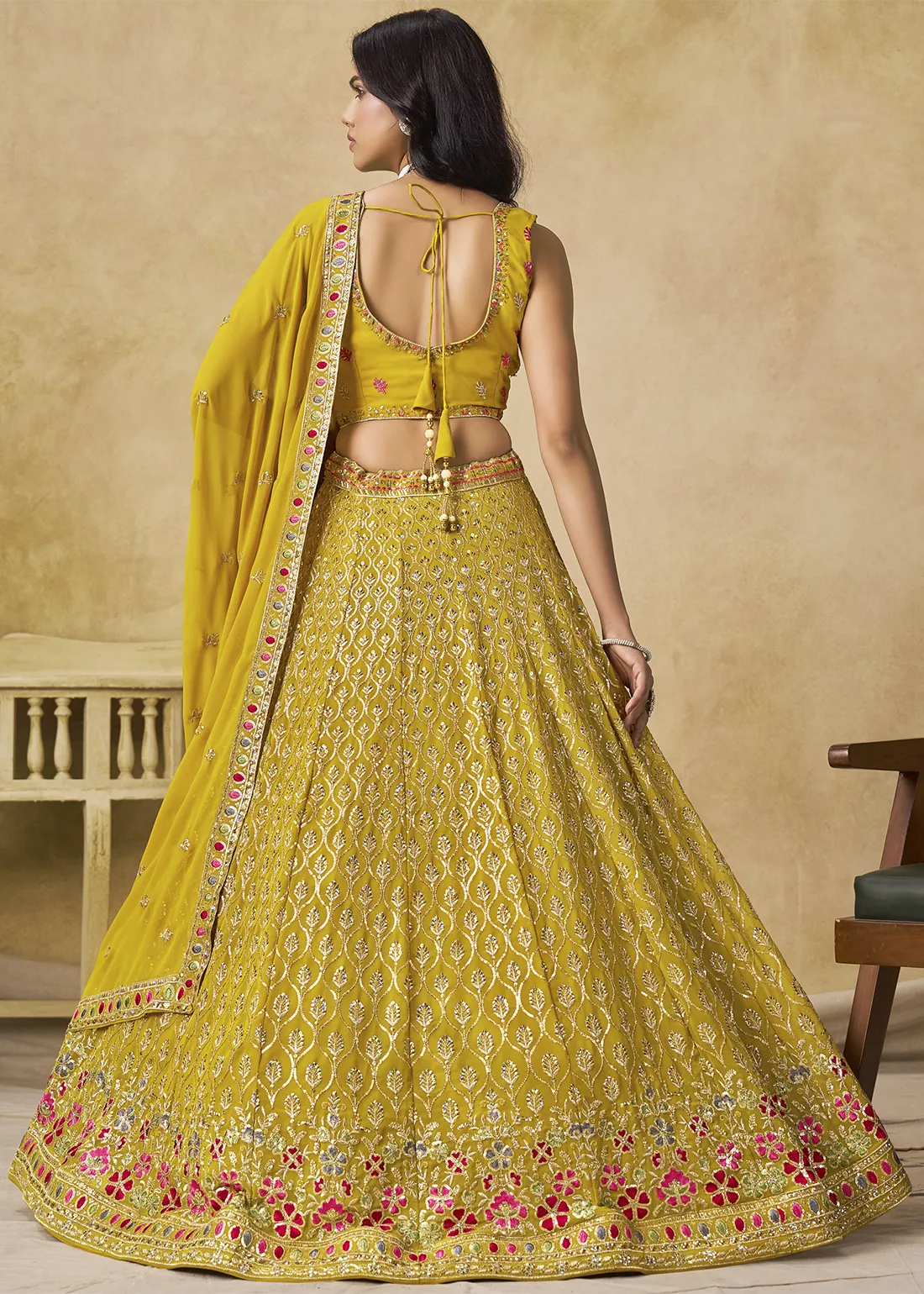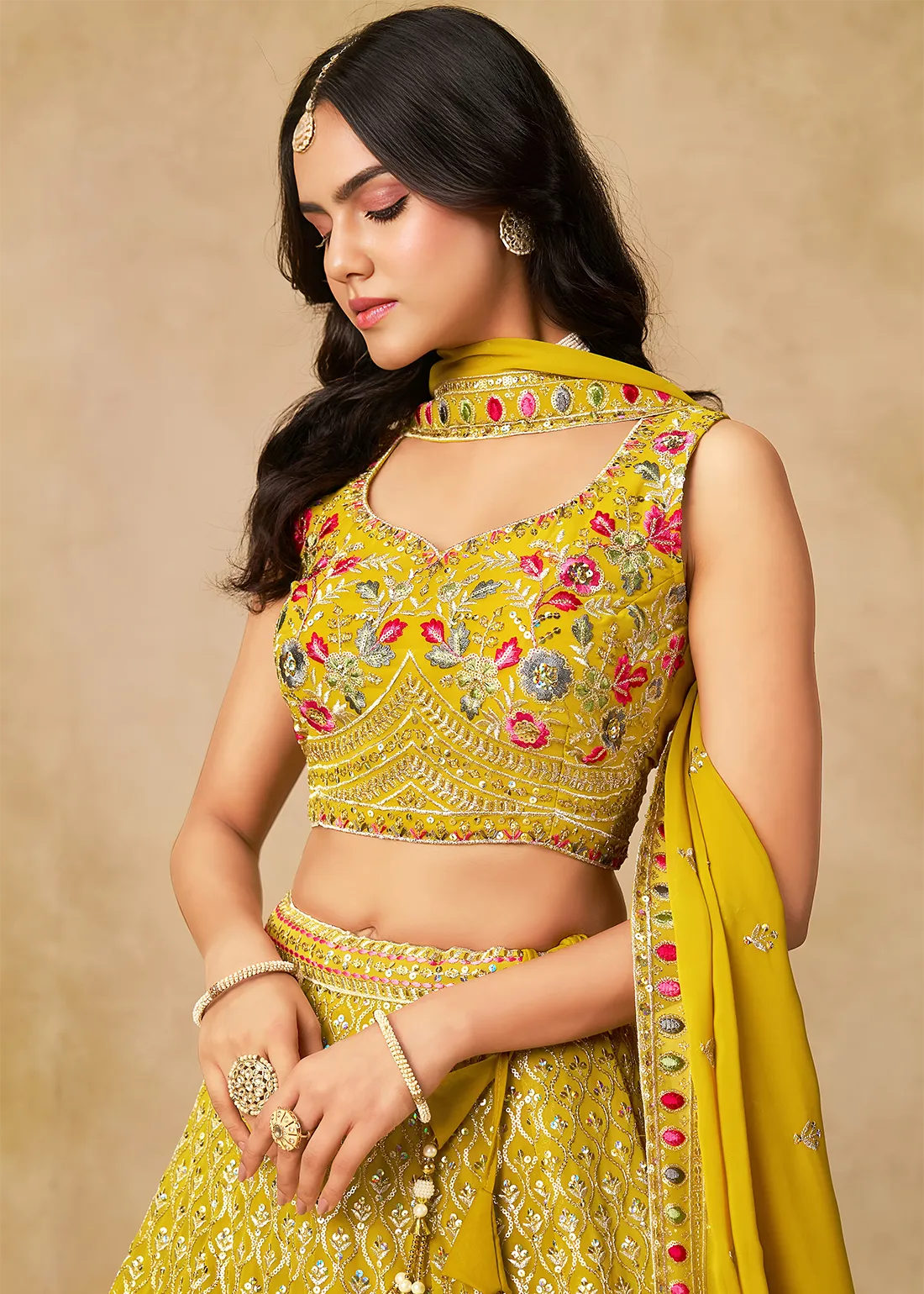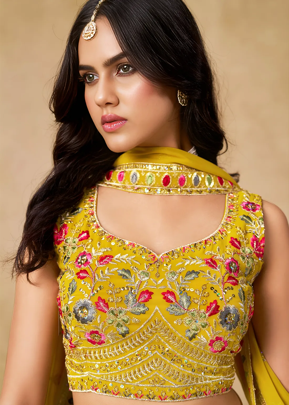 Yellow Georgette Embroidered Lehenga Choli with Dupatta