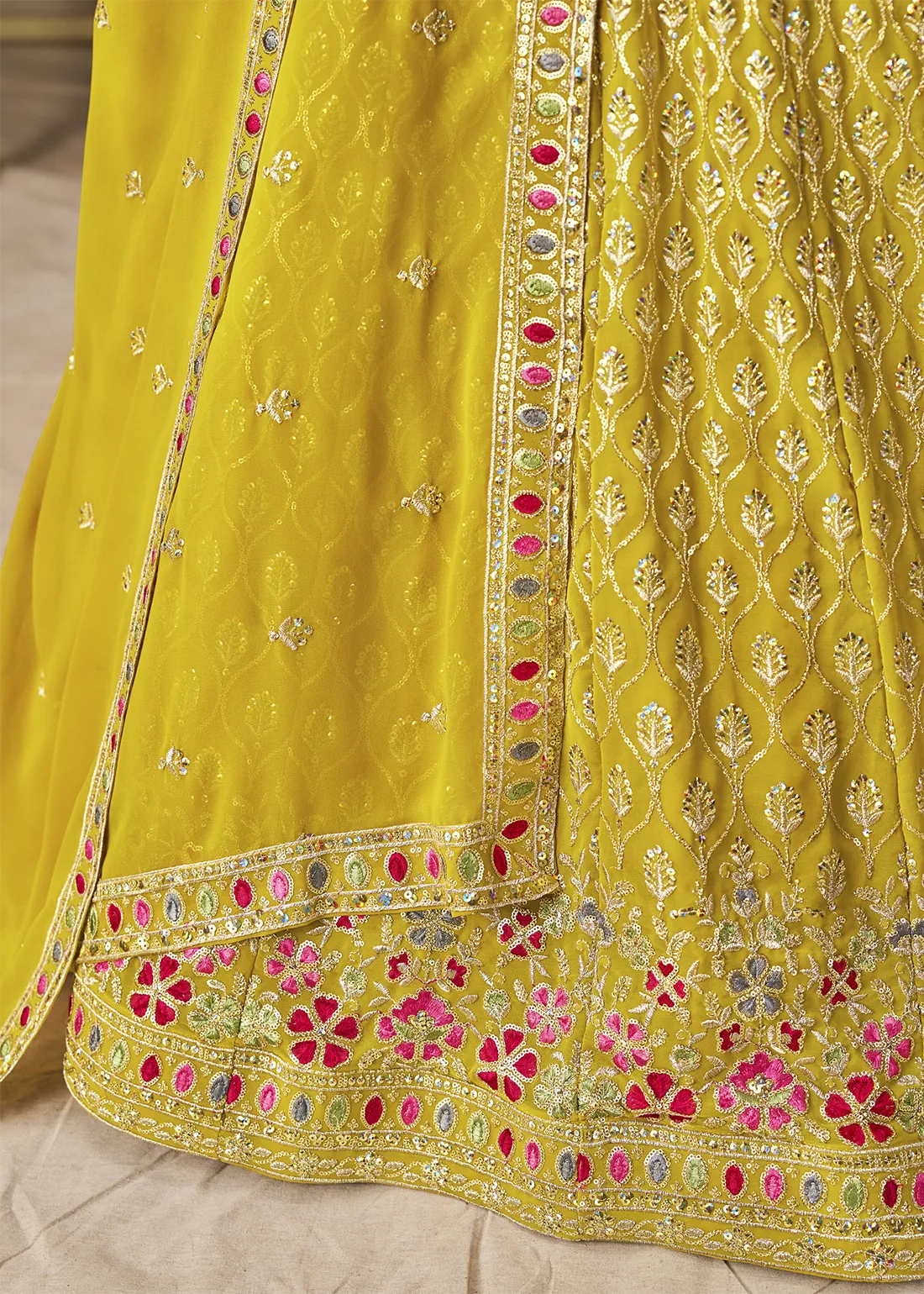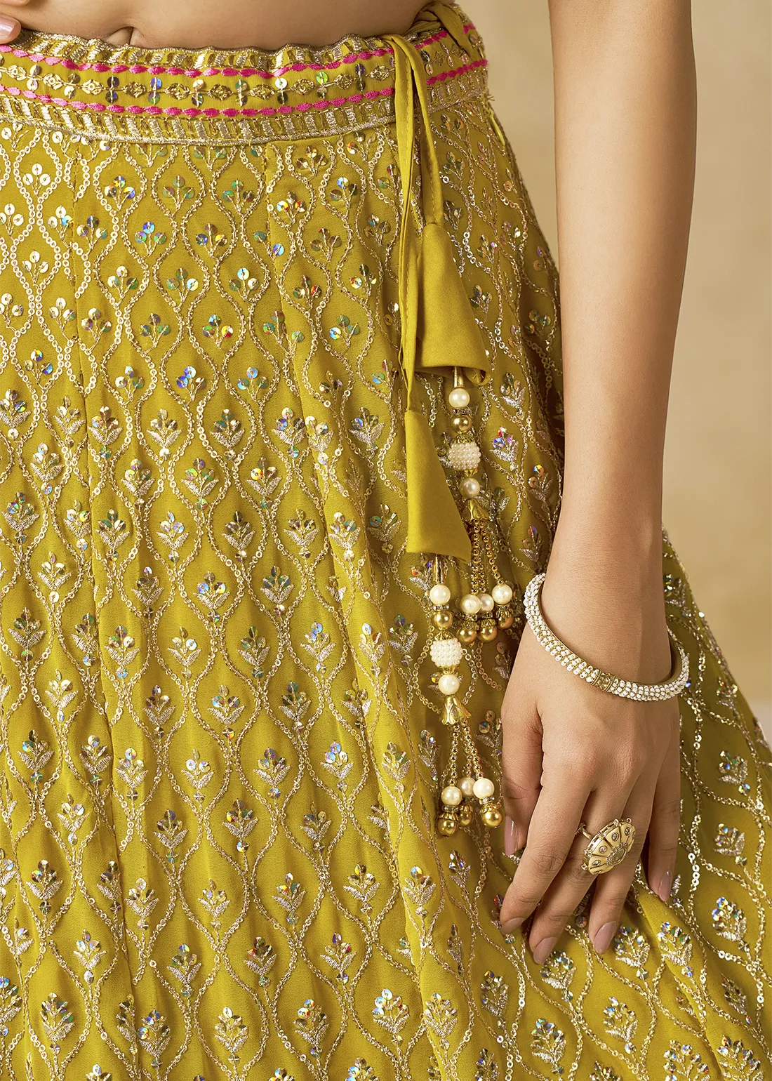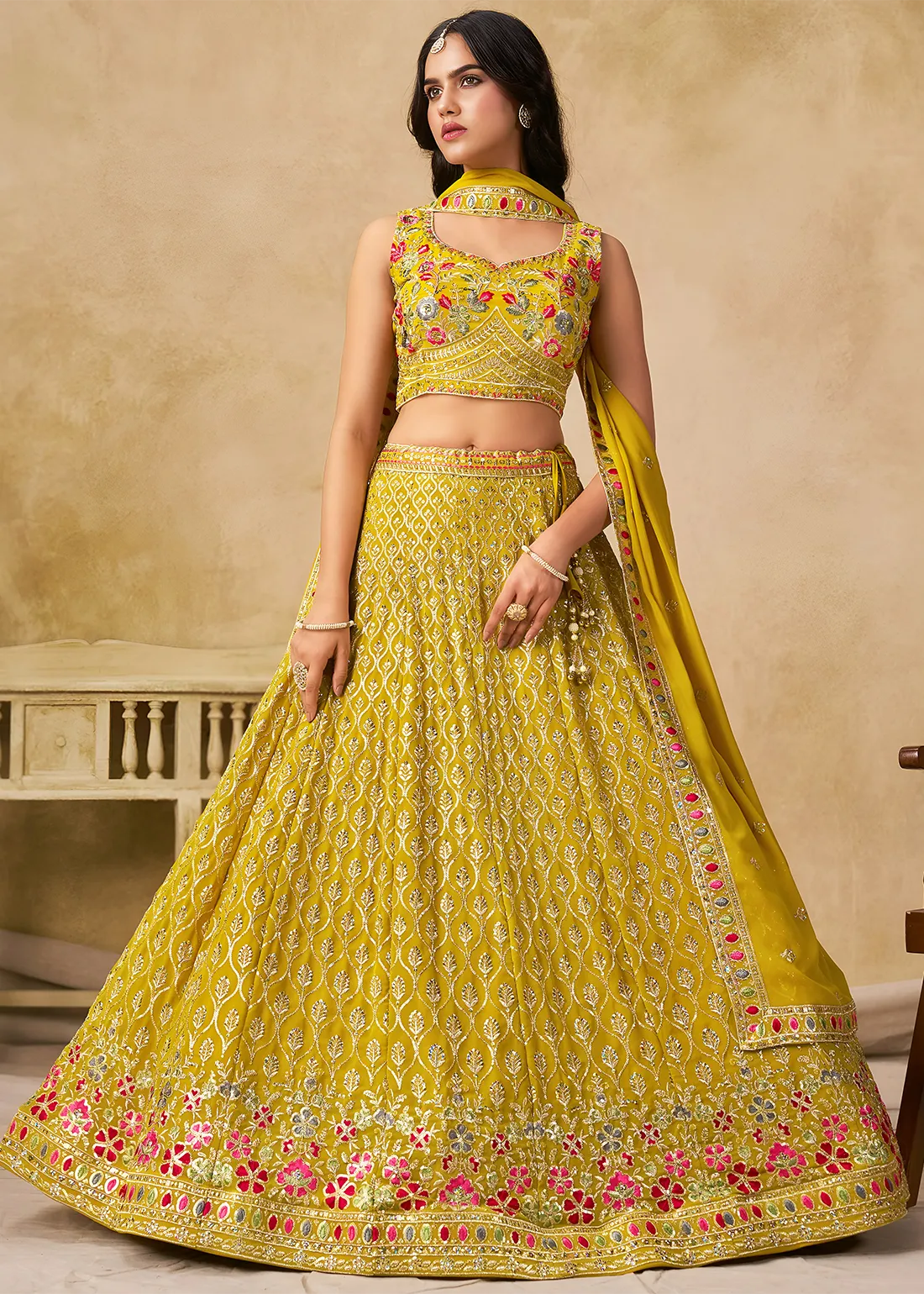 Yellow Georgette Embroidered Lehenga Choli with Dupatta