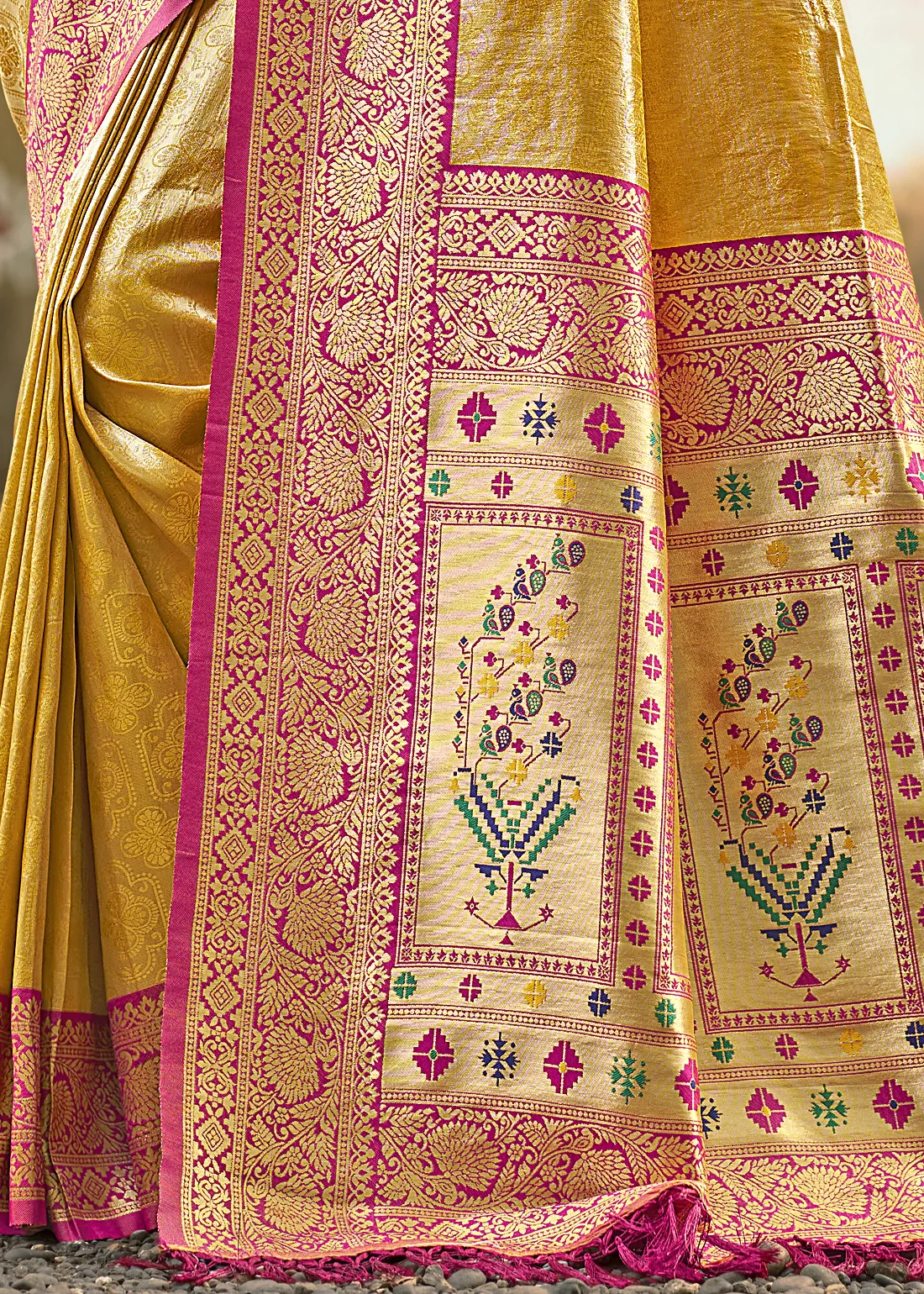 Golden Yellow Kanjivaram Silk Saree with Meenakari