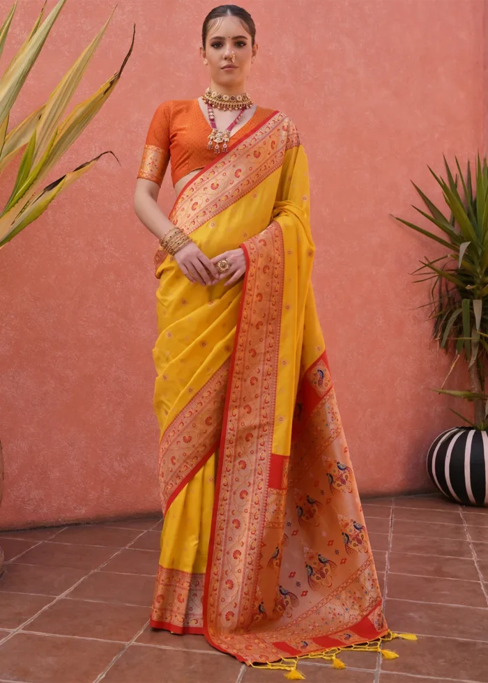 Yellow Paithani Silk Saree